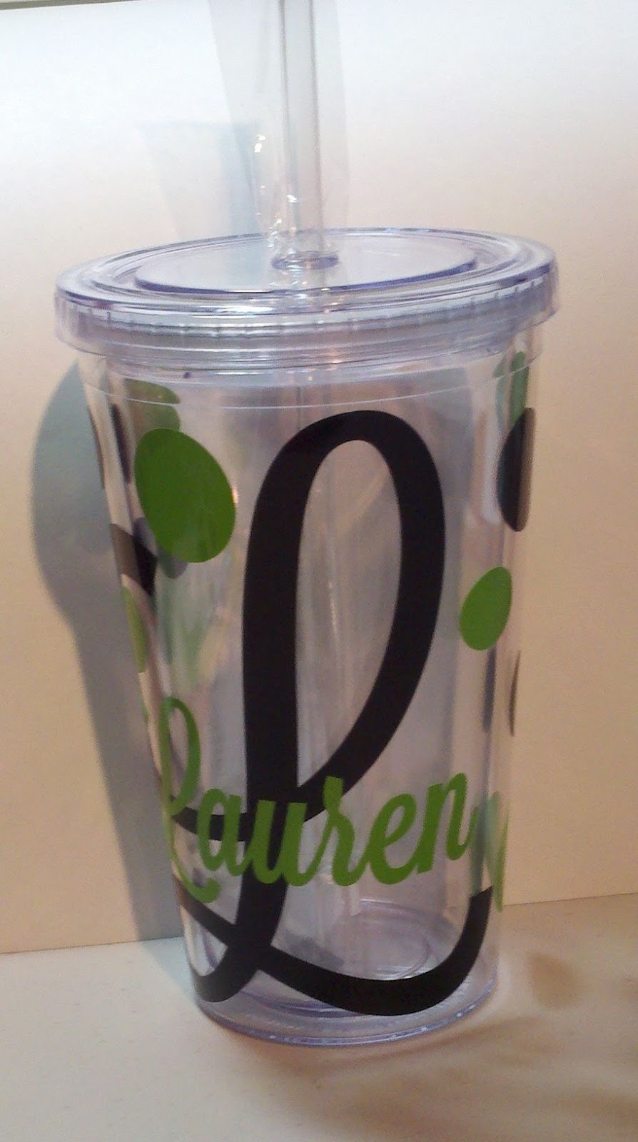 I have seen some cute tumblers but they never are the exact colors I want. And never have the entire name on them.So, I decided to make a couple for two friends. I am going to give them to them today. I hope they like them.